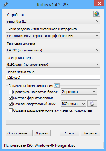 3. Владельцам компьютера с дисками со структурой GPT нужно знать, что доступна установка только 64-х битной версии, и при установке системы с флешки, она должна быть отформатирована в FAT32. Рекомендую программу Rufus последних версий с выбором в ней соответствующих параметров. Установка системы на GPT диск возможна только из под UEFI интерфейса.