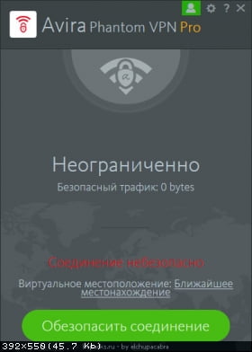 Описание:Avira Phantom VPN — считается новейшим результативным прибавлением, что дает все без исключения достоинства индивидуальных условных сеток в неназойливой фигуре. Разблокируйте запретные веб-сайты и сервисы и улучшите защищенность Сеть интернет-подсоединений с поддержкой нынешней и верной VPN-работы.