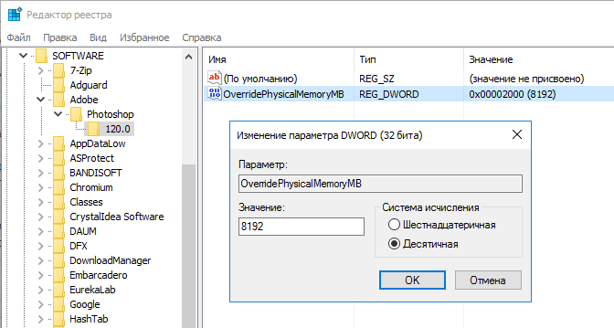 Adobe Photoshop: требуется целое число в диапазоне от 96 до 8