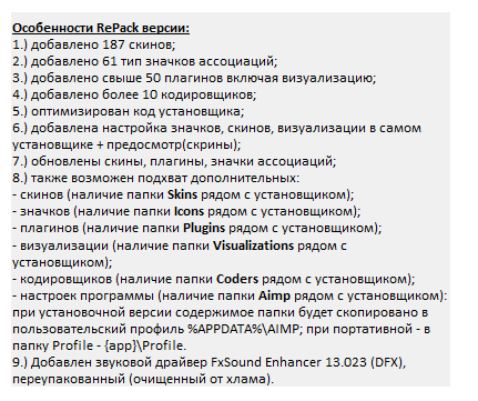 плагин MiniLyrics, дополнительный набор значков, все DSP модули кроме Compressor and Wider и Enhancer.
