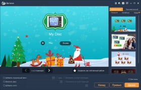 • создавать меню DVD-диска используя различные шаблоны. Разработчики разнообразили шаблоны по предназначению: свадьба, путешествия, праздники и т.д. Пользователь также может самостоятельно выставить любое изображение в меню создаваемого диска;