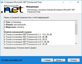 • Тихая установка NET Framework 1.1 - 3.5: /S /A