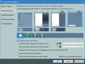 Позволяет настроить отображение и поведение меню «Пуск» и интерфейса Windows 10: скины, изображение кнопки, активные углы экрана и многое другое.