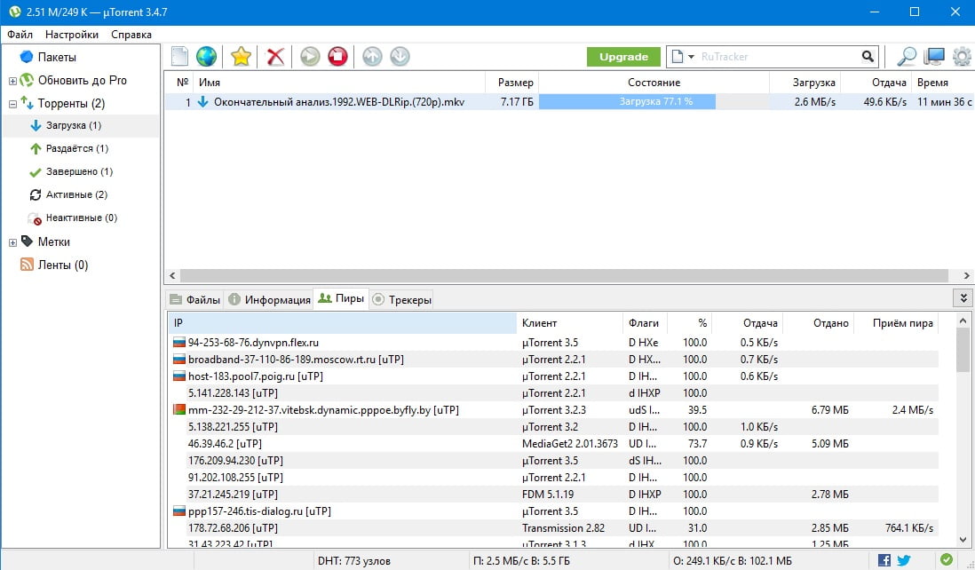 uTorrent имеет возможность задавать приоритет трафика и регулировать скорость;